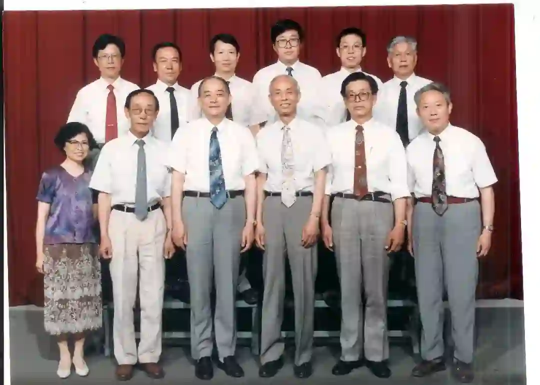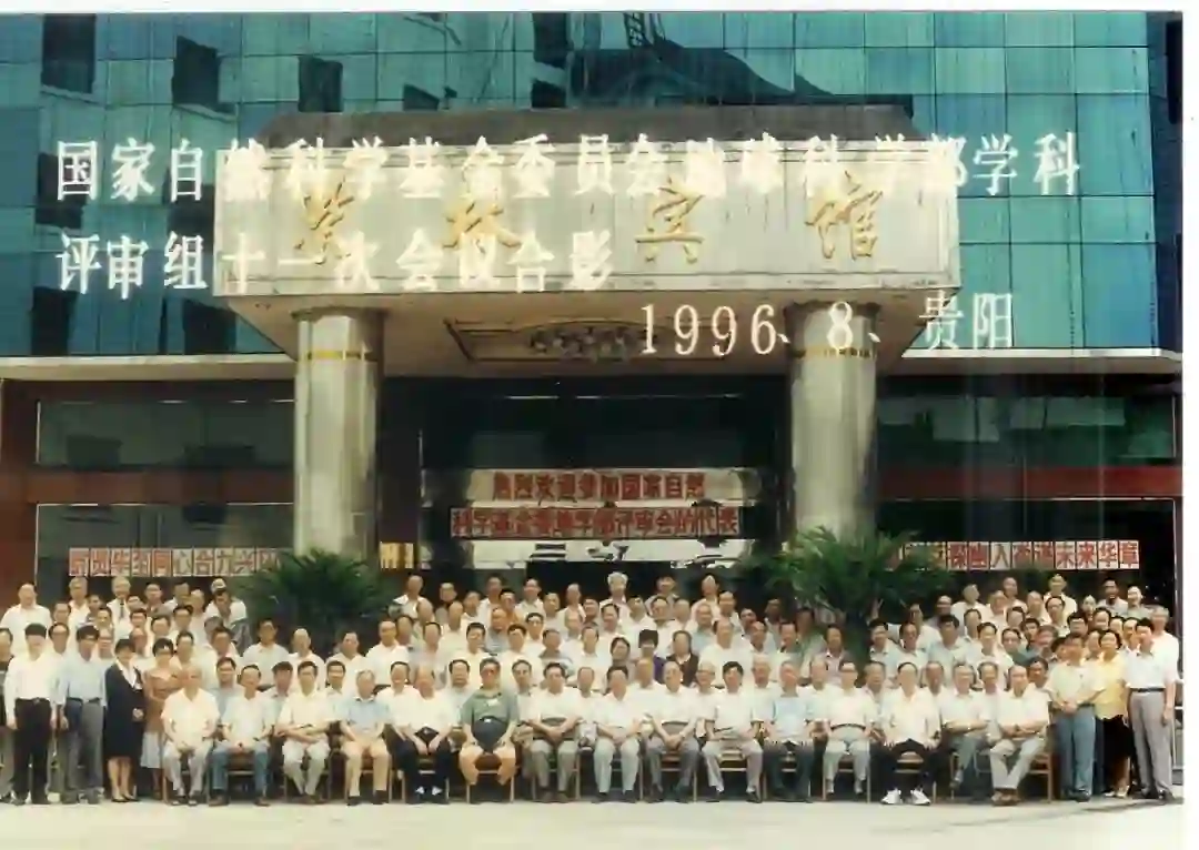 1990年国家自然科学基金委员会评选地球科学部党支部为优秀党支部,支部全体党员合影。前右起:张知非、范元炳、沈文雄、孙枢、朱志文、赵楚年;后右起:项永仁、郭进义、于晟、马福臣、郭廷彬、陆则慰。