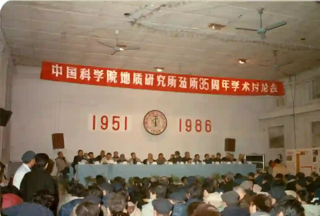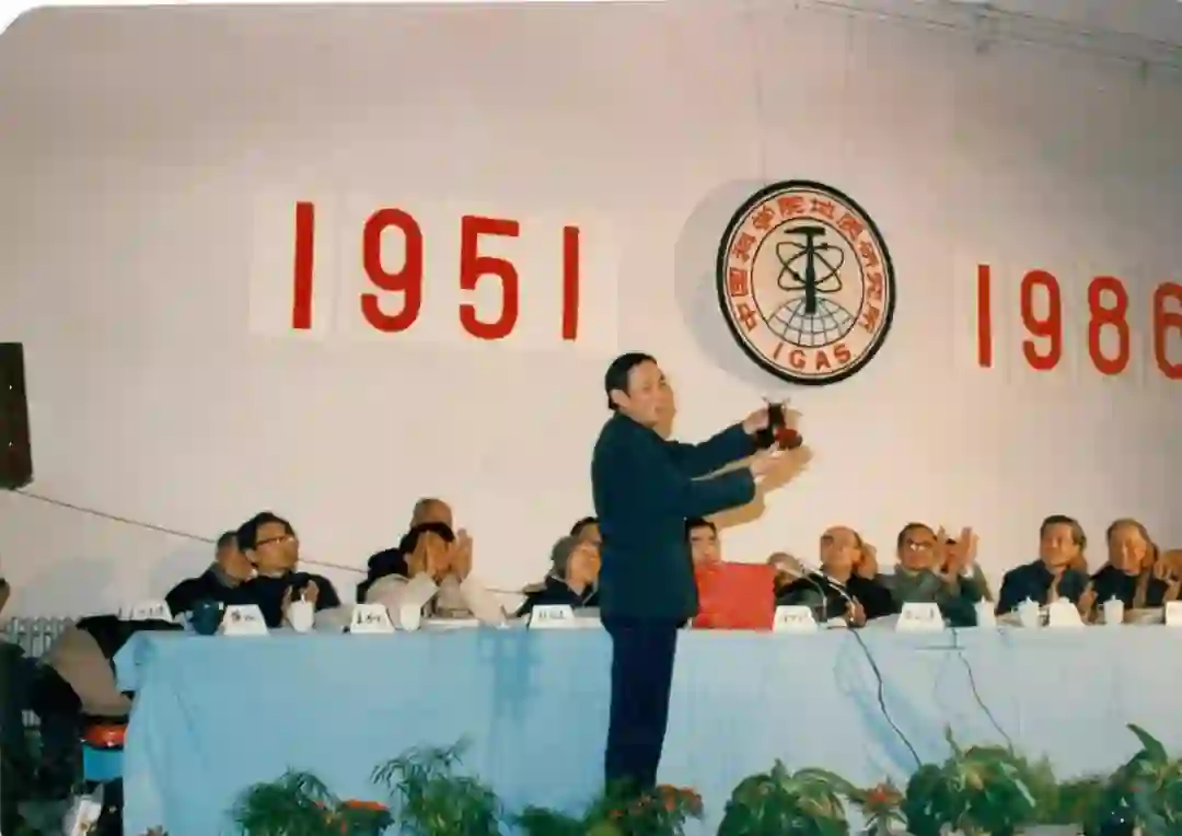 中国科学院地质研究所35周年所庆(1951年-1986年),孙枢在大会展示中国科学院地球化学研究所所赠礼品。