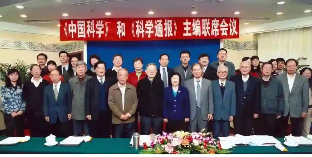 《中国科学》和《科学通报》主编联席会议(2008,北京),前中:周光召。