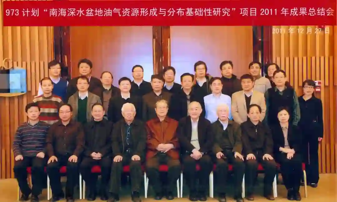 南海深水油气973项目总结会(2011),右起:常旭、罗治斌、胡见义、孙枢、刘光鼎、秦蕴珊、汪集旸、朱伟林。