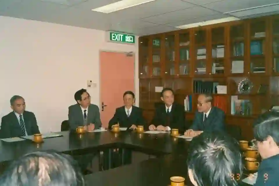 代表国家自然科学基金委员会和国家自然科学奖励委员会访问香港大学并讨论香港科学家申请国家自然科学奖,右起:王赓武、孙枢(1993,香港大学)