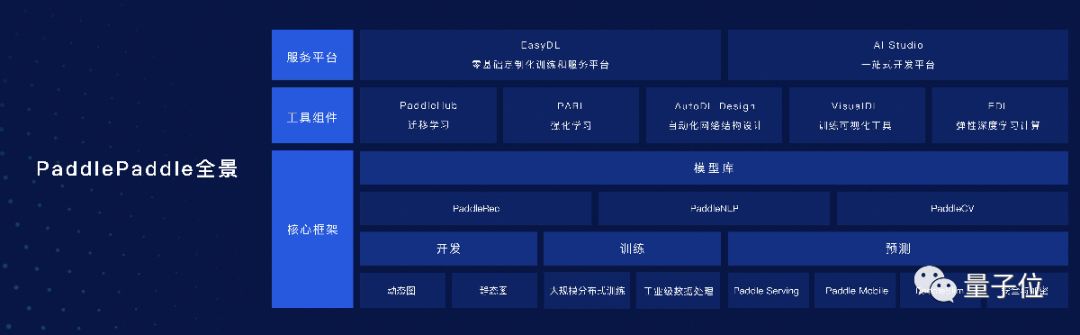 除了这些框架之中支撑深度学习全流程的功能之外,PaddlePaddle还有三款工具组件亮相: