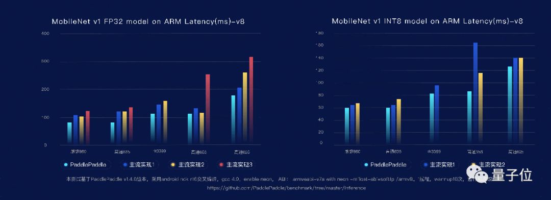 移动端性能的优化更加关键,百度在多款芯片上测试了MobileNet网络的延迟,也可以看到非常明显的优化。