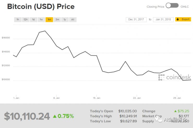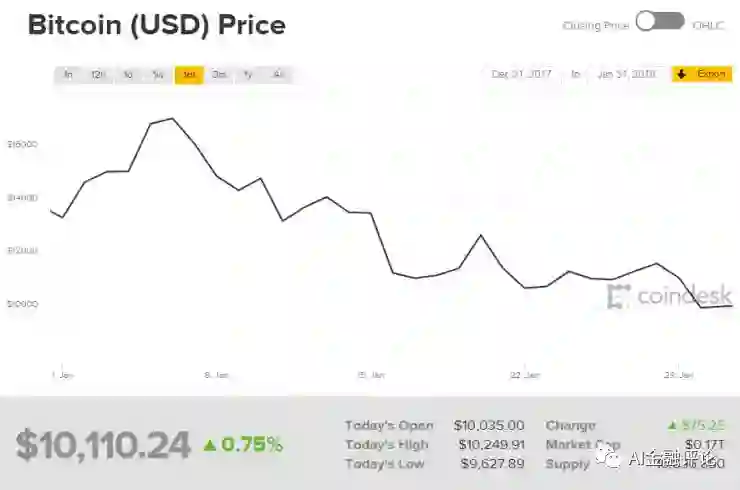 比特币自月初以来持续走低。雷锋网AI金融评论报道,截至本文发稿前,Coindesk行情显示,比特币价格最低探至9627.89美元。这是过去两周内比特币第二次跌破1万美元关口。