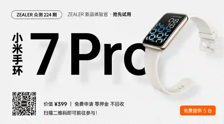 还在用看不清字的超小屏手环?格局打开!全新小米手环 7 Pro 上线 ZEALER 众测!全彩方形大屏,带来堪比手表的视觉感受、内置独立 GPS 定位,精准记录运动轨迹、全天候息屏显示,无需点亮即可轻松掌握时间、搭配祖传拿手健康监测,心率、血氧、睡眠...统统拿下!想知道体验如何?扫上方二维码或戳左下角「阅读原文」即可前往参与。