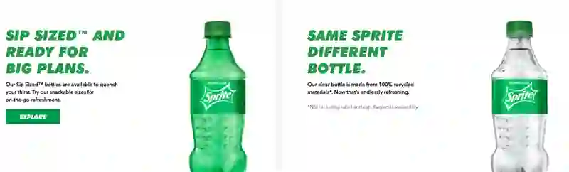 雪碧在一些国外市场已经从绿瓶改用透明塑料瓶等,特定的口味,如樱桃和无糖,只用透明塑料。可口可乐周三还宣布,瓶装水品牌 Dasani 将由 100% 回收的 PET 塑料制成。新闻稿称,与 2019 年相比,此举将减少 2000 万磅塑料垃圾。通过 2018 年宣布的“无浪费世界”倡议,可口可乐的目标是到 2030 年在其瓶罐中使用至少 50% 的可回收材料。