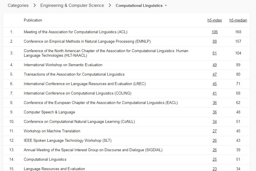 自然语言处理的榜单由 ACL、EMNLP 和 NAACL 强势占领。