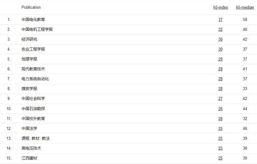 最后,让我们来看一下中文榜单的期刊排名情况:
