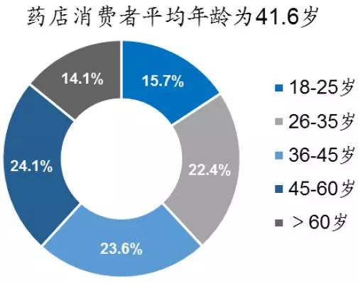 其次,线下连锁药店的服务价值增加了消费者粘性。 零售药店与便利店、超市等其他零售业态不同,除了单纯的渠道价值更存在服务价值,实际生活中很多消费者在进店时不清楚选择哪种药品,多是在药师和店员指导下完成购药行为。受网上渠道吸引较大的人群多是年纪较小的消费者,考虑到药店消费者平均年龄为42岁,线下连锁药店对消费者的粘性将长期存在。