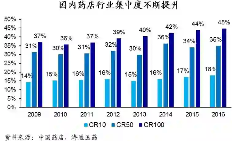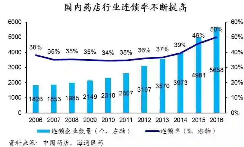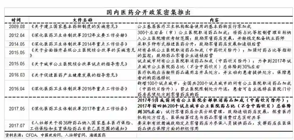 3)处方外流: 在提高行业集中度和医保资质/账户放开背景下,医疗/医保/药店信息共享加强,有望加速推进处方外流进程。
