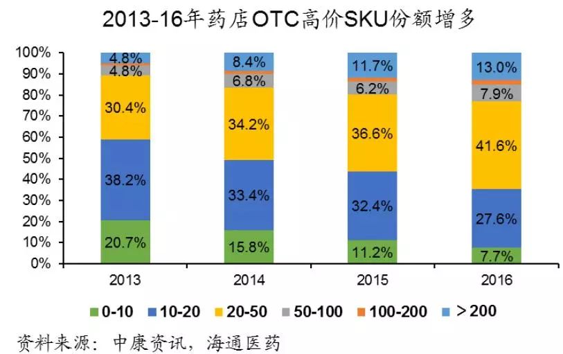 1)对药店各品种的售价监控难度较高。药店销售品种执行较复杂的定价体系, 同一连锁药店旗下的药店甚至执行“同城不同价”的定价,结合具体药店的位置、开店时间和周边竞争情况进行定价, 且目前还有一半的单体药店,各品种的定价差别较大,售价监控依赖行政手段较难,不如价格竞争带来的调节有效。 2) 价格倒挂品种的销售占比较低。 即使真的对药店品种的价格实现监控,因倒挂品种于药店的销售占比很低,故造成影响很小。