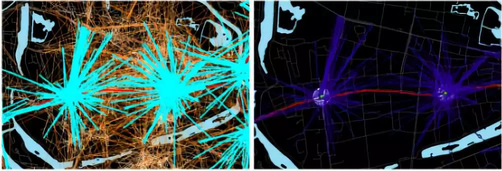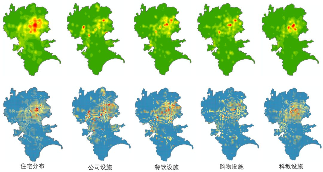 从城市整体空间上可以看出,车辆分布主要集中在城市核心区域,并与城市住宅、公司、餐饮、轨道交通站点等热点设施的分布高度重合。在这些热点设施周边的车辆停放需求是同区域其他设施周边的5-8倍,停放缺口矛盾突出。