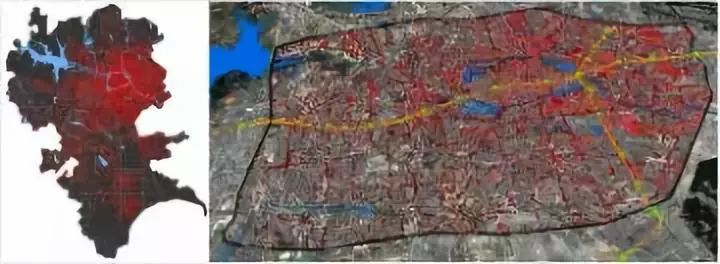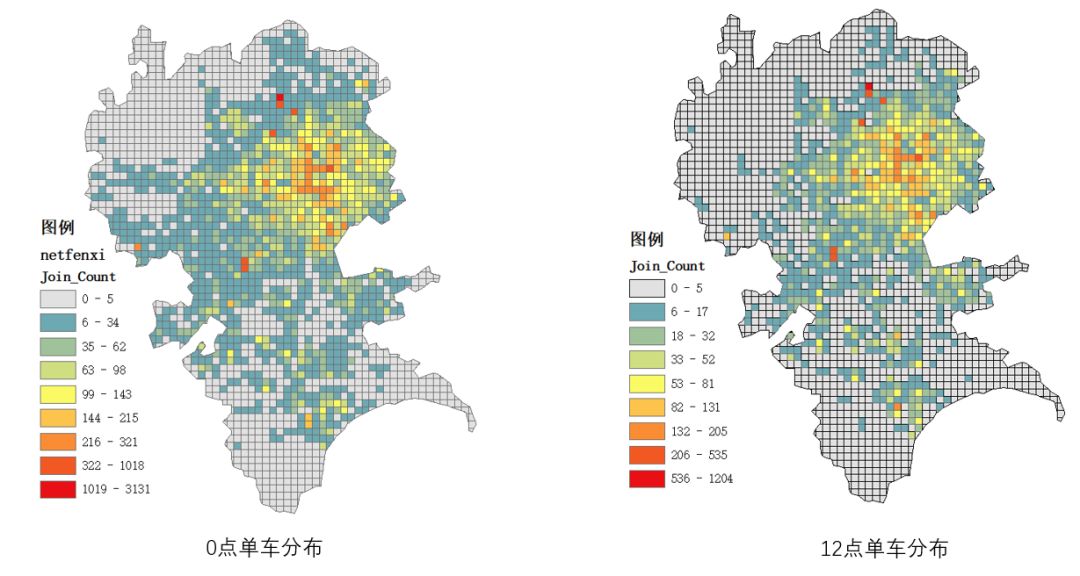 图2:合肥市中心城区单车分布(左)、二环内单车分布(右)