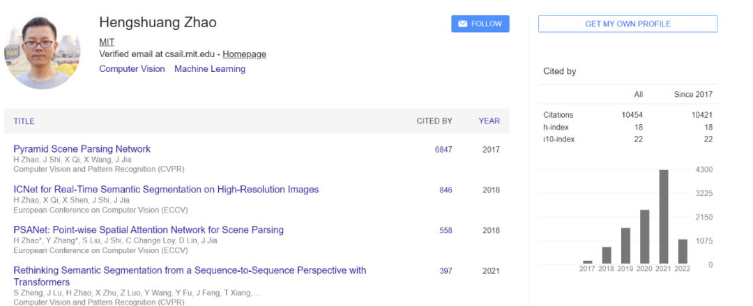 赵老师和他的团队获得过 4 项国际学术竞赛冠军,开源代码在 GitHub 平台累计获赞超 1 万次,算法成果在 YouTube 上展示被观看超过 10 万次。在 CVPR/ICCV/ECCV/NeurIPS/TPAMI 等顶级会议和期刊上发表多篇高质量论文,其中场景解析算法 PSPNet 单篇引用达 6,000 + 次,论文总引用达 10,000 + 次。获评人工智能大会明日之星和 AI 2000 人工智能最具影响力学者。