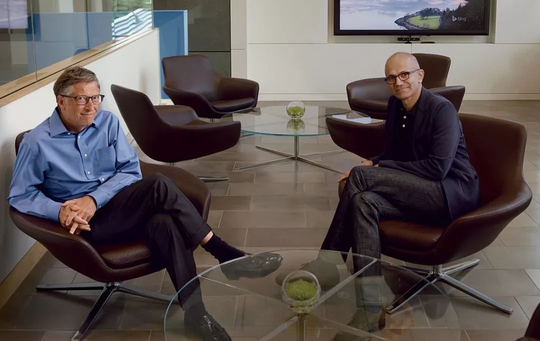 纳德拉和微软创始人及第一任CEO比尔·盖茨在一起