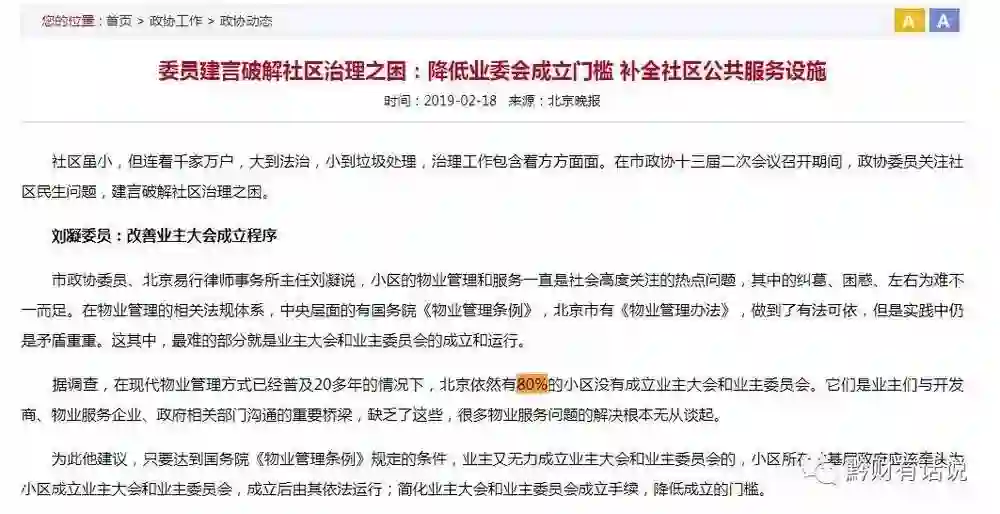 开业主大会难、成立业委会难,这是一个普遍难题。下文是一位北京政协委员在今年两会时的相关建议,文中称: