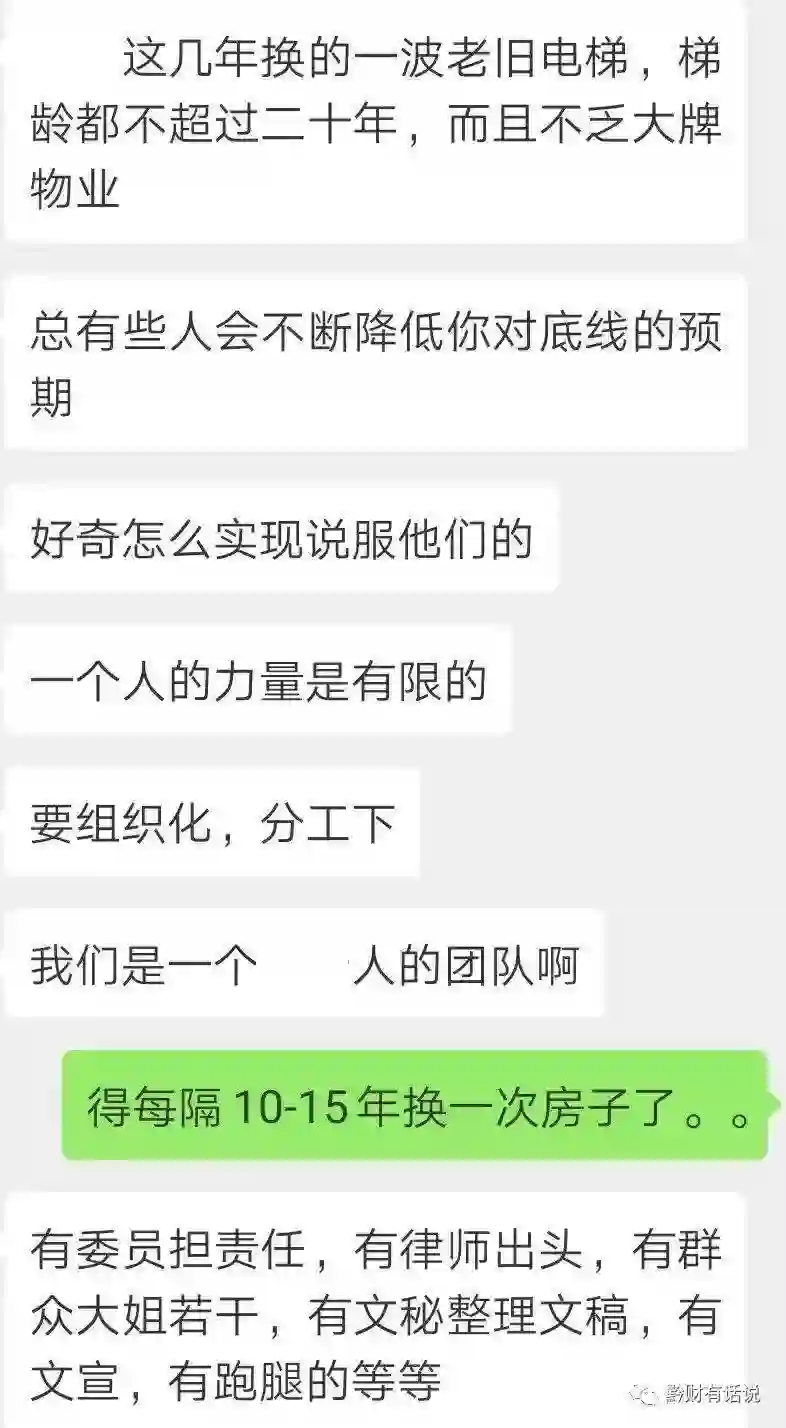经过持续两年的“斗争”,这位师姐成功领导业主们成立了业委会、走通了更换物业公司的流程、走通了投票提升物业费的流程、成功引入一线品牌物管、并将电梯更换为知名大品牌。
