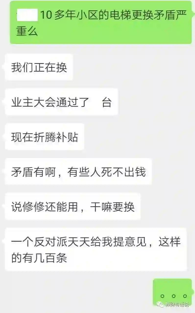 这位师姐有一套自住用的一线城市顶级学区大四居,房龄过了15年,同样面临更换电梯和保持小区品质的难题。