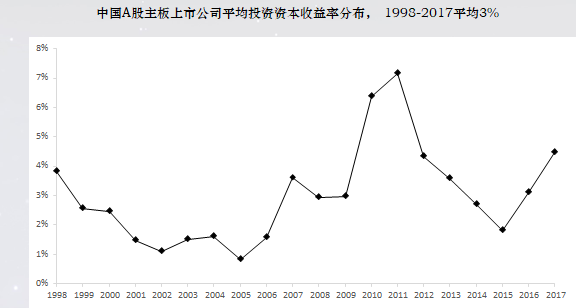 但是这个问题就是说我们未来怎么办,我想的话,我们讲到资本市场很多很多的问题,在过去很长一段时间,大家都比较失望,我想要破题了,最主要的原因在什么地方,我们企业大,但是我们企业各方面的投资资本是非常的多,这个是一本书,在书里做了过去20年中国主板上市公司有一个叫《投资资本收益率》这样的一个分析,也就是ROIC分析,也就是投资资本,越高的话表明资本使用效率越高,给投资者的回报就越高。