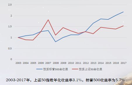 我们再回到上市公司里面来,上市公司刚才讲到取的上证50和标普500相比较,感觉还好,这个数字,03到2017年,上证50年化只有3.1%,这个比例是非常低的,背后我想折射出的还是刚才讲到的投资标的物,质量怎么样。