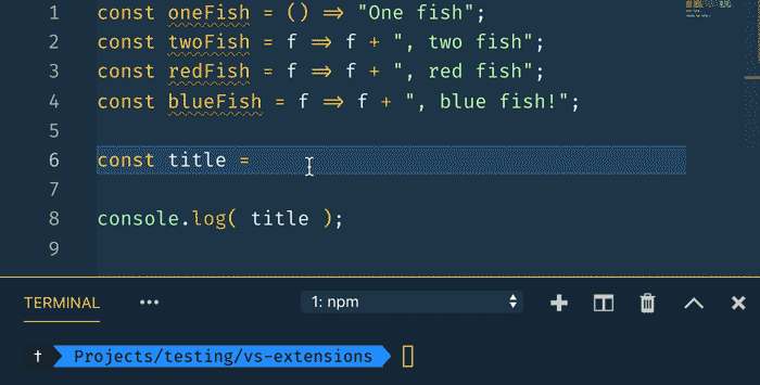 ESLint组件会使用本地ESLint和配置规则来查找JavaScript代码中的常见模式问题,以便减少bug而编写出更好的代码。ESLint还可以重新格式化代码使其一致性更好,这取决于我们启用的规则。请确保VS Code设置了自动保存修复功能(”eslint.autoFixOnSave”: true)。