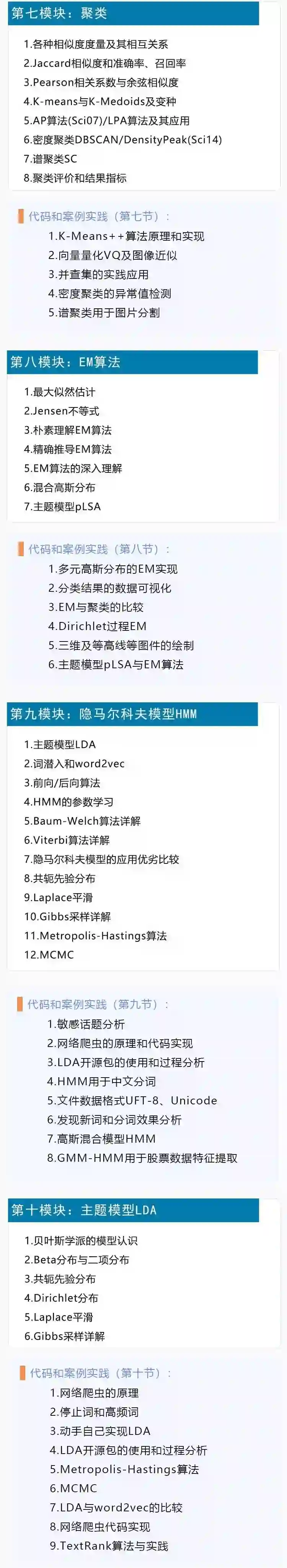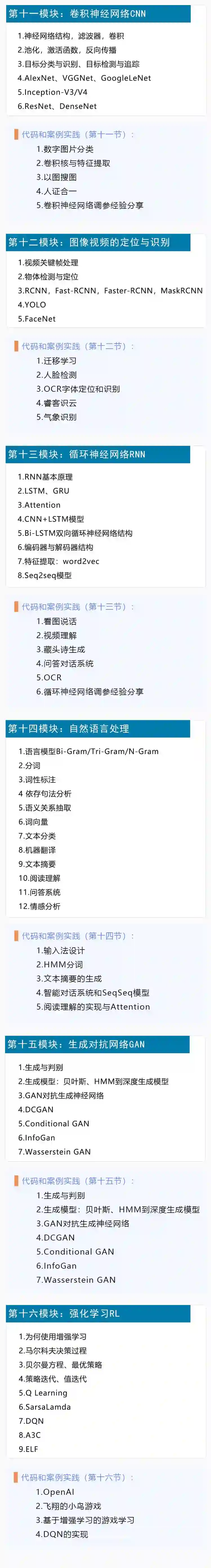 课程强调动手操作;内容以代码落地为主,以理论讲解为根,以公式推导为辅。共16天16个模块32个学时,每学时各1~1.5小时,136个知识点,82个代码和案例实践,讲解机器学习和深度学习的模型理论和代码实践,梳理机器学习、深度学习、计算机视觉的技术框架,从根本上解决如何使用模型、优化模型的问题;每次课中,首先阐述算法理论和少量公式推导,然后使用真实数据做数据挖掘、机器学习、深度学习的数据分析、特征选择、调参和结果比较。