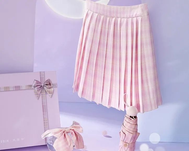 火出圈的JK,不断有玩家涌入这个赛道,其中还不乏一些大品牌,比如做格子很专业的天堂伞,在今年7月联合乐町推出联名款,买格裙送格子伞。