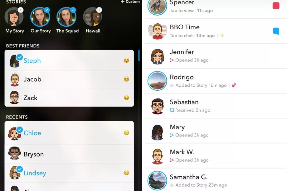 出于“让亲密朋友更多对话”这样的想法,Snap 从去年起,调整了算法,分离了朋友和品牌广告主。还让“最好朋友”算法发挥功效,你跟哪个朋友互动越多,聊天越多,你就能越多地看到他们的“故事”(stories),他们的动态。