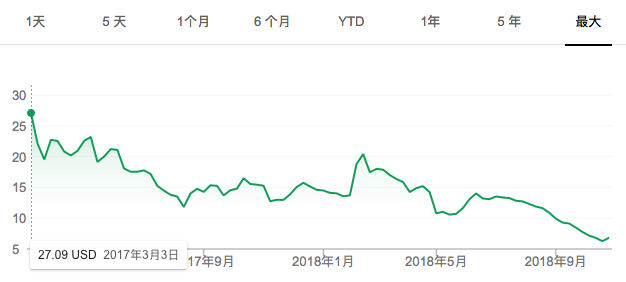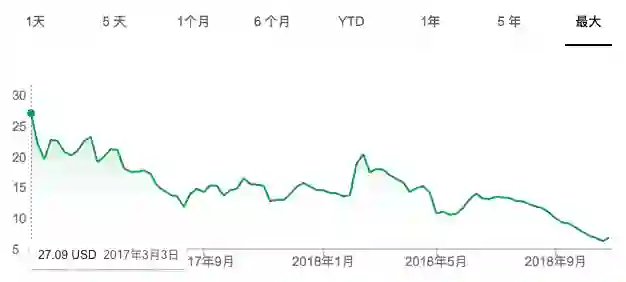 从 Snap 上市以来,股价从 27 美元的高点,跌至最低时仅有 5.99 美元... 在这一年零 8 个月当中,Snap 股价一路下滑,2018 年至今,跌幅约为 47%。