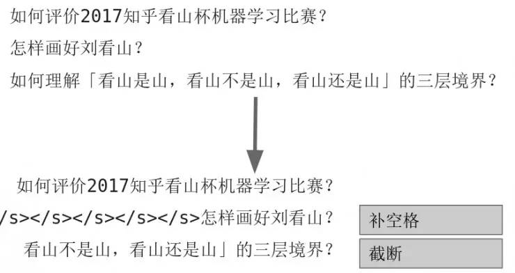 对于不同长度的问题文本,pad 和截断成一样长度的(利用 pad_sequence 函数,也可以自己写代码 pad)。太短的就补空格,太长的就截断。操作图示如下: