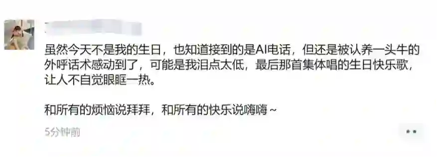 当然祝福的方式可以有很多,比如认养一头牛的这种AI电话;还可以是创始人亲口的祝福;也可以是为你读首诗;也可以是真实的送上一份礼物,只不过需要通过电话告诉你去领取;当然去你们线下门店一起办活动就更好了。