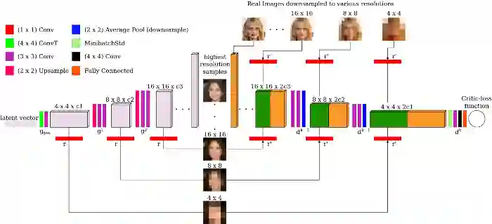 多尺度梯度论文的作者能够训练GAN直接生成高清晰度 1024x1024图像,没有任何特定的障碍(模式坍塌等),而以前只有progressively growing GANs(英伟达ProGAN)才有可能。我已经在我的项目中实施了它,我注意到这是一个更稳定的训练和具有令人信服的结果。