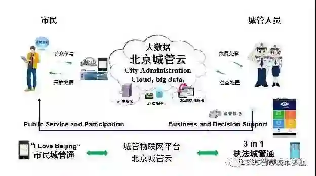 基于云计算、物联网、大数据构建了将整个市民生活和城市管理的空间作为开放众创空间的新网络、新数据环境,形塑了大众参与的智慧社会,而智慧城市的“云”与“端”是新网络、新数据环境下大成智慧的必然要求。“云”与“端”的结合,将基于城域开放众创空间推动大众创新,实现智能融合、随时、随地、随需、随意的城市管理与服务应用,进一步彰显个人的参与和群众的力量。图三为北京城管依托城管云打造“端到端”服务。