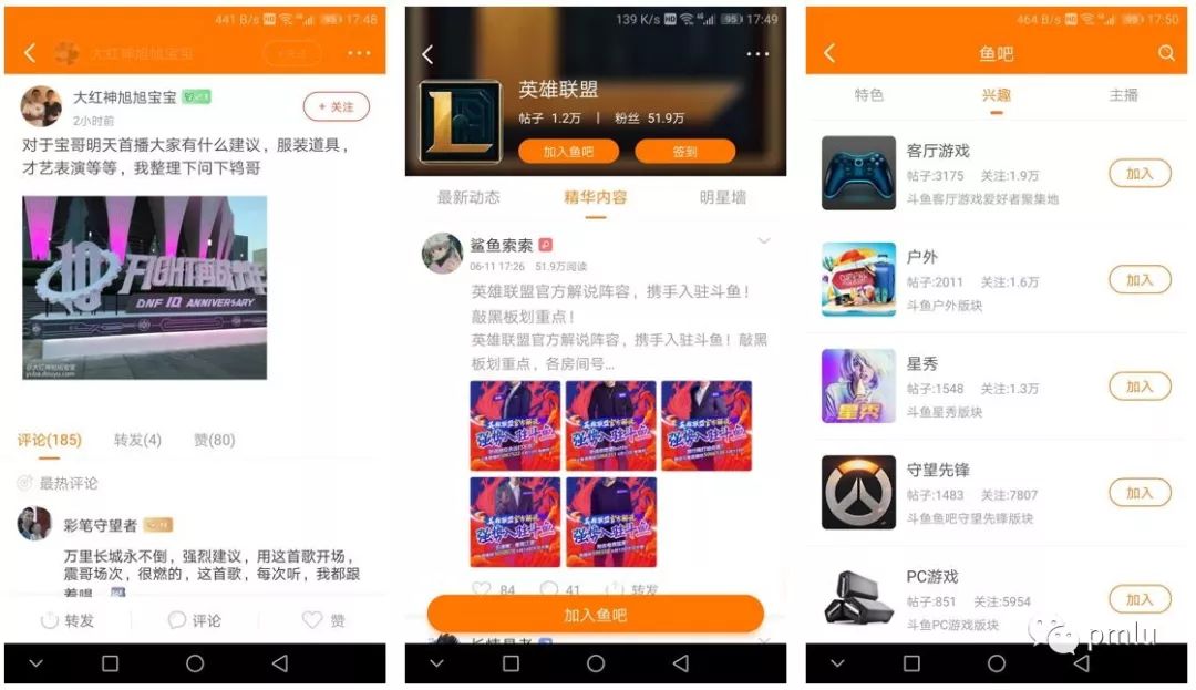 这样做的好处是显而易见的,首先将用户凝聚在了一起,如果没有鱼吧,那么用户可能选择其他的平台来进行讨论,这对于斗鱼而言就有失去用户的潜在风险。能够让用户在这里看直播之后还在这里进行讨论显然是有利无害的做法。