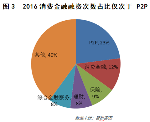 智研咨询数据显示,2016年,消费金融融资次数占比12%,仅次于P2P。从2016年-2017年消费金融行业投融资项目情况来看,获得融资机构的融资额度均大幅增长,包括趣店、易生、乐信等多家公司均获得数亿美元级别的大额融资。