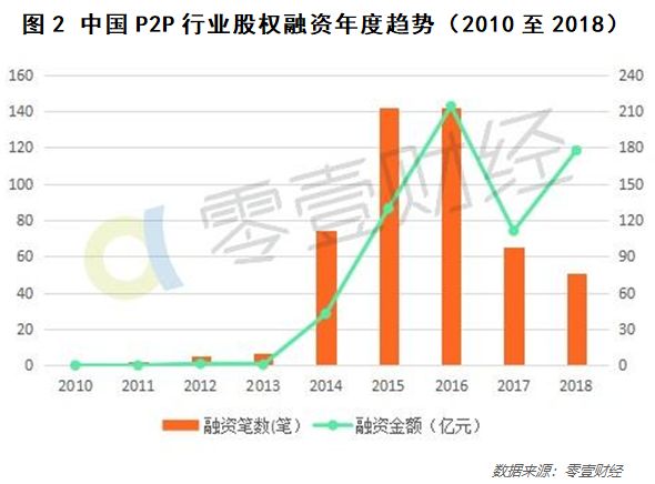 (1)P2P:舶来品的高光与落寞。作为舶来品和新生事物,P2P出道即是巅峰——在2014年全民互联网理财开启之时,跻身年度热词,成为PE/VC机构的座上宾。零壹财经数据显示,2014年的P2P融资额较2013年显著提高,全年高达70多亿元;2015年、2016年,P2P融资趋势不减,持续维持140多亿元的天量融资。