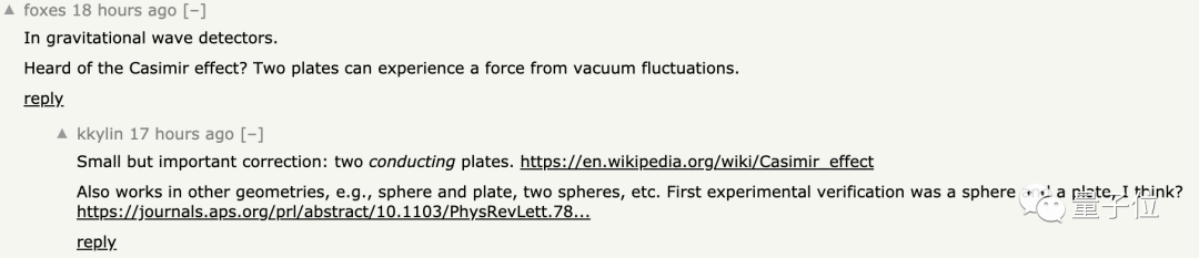 有网友开始认真求问,引力波探测器内部的构造是不是与卡西米尔效应有关。
