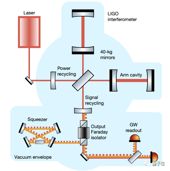 研究团队设计并加装一个名为量子挤压器的装置,用来调整LIGO干涉仪内量子噪声的特性,从而提高LIGO在探测引力波方面的灵敏度。