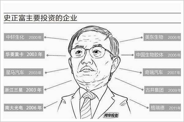 中轩生化之后,史正富又陆续投资了华菱星马、浙江三星、南大光电、奇瑞汽车和古井贡等项目。