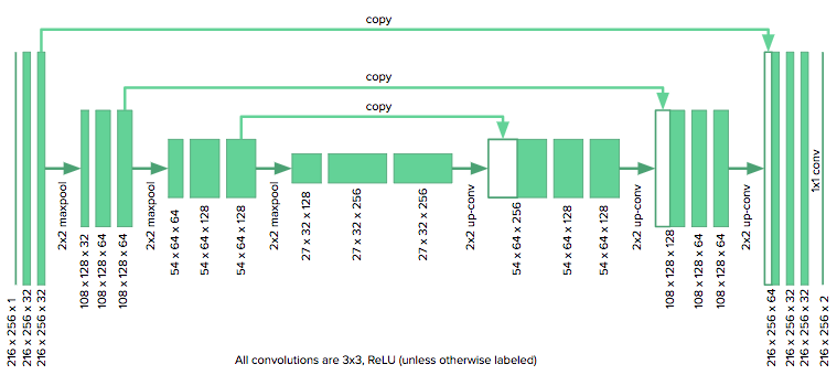由于我们只有4周的时间来完成我们在Insight的项目,所以我想尽可能快地获得一个基准模型并实施。我选择由Ronneberger,Fischer和Brox提出的u-net模型,因为它在生物医学分割任务中已经取得了相当的成功。