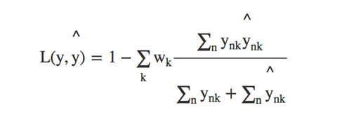 我们还使用一个“软”戴斯系数损失函数再次总结类别与权重wk,使其重新平衡: