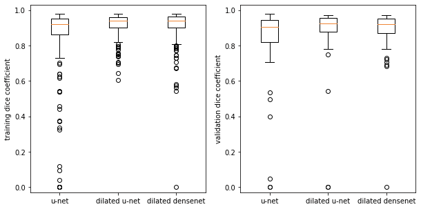 | Dilated u-net | 0.94 (0.05) | 0.90 (0.14) | 0.88 (0.18) | 3.7M |