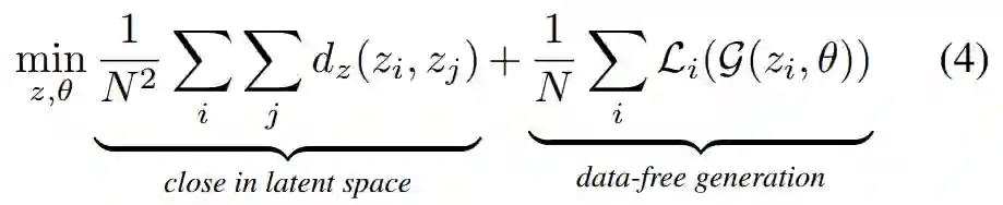 在 DFKD 中,求解如下等式 (2) 的一种流行方法是直接按批次优化多种样本。