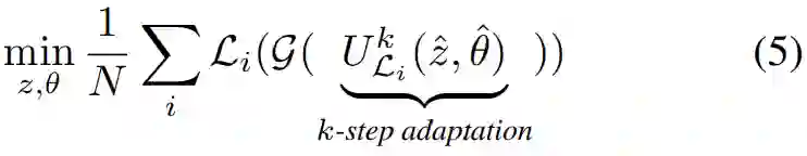 具体来说,该研究用共同特征学习的目标来训练一个轻量级生成器,该生成器可以适应为在 k 步内合成不同的实例,表述为元学习问题的形式:
