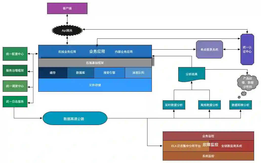 对于一个互联网企业,后端服务是必不可少的一个组成部分。抛开业务应用来说,往下的基础服务设施做到哪些才能够保证业务的稳定可靠、易维护、高可用呢?纵观整个互联网技术体系再结合公司的目前状况,个人认为必不可少或者非常关键的后端基础技术/设施如下图所示: