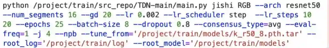 然后,需要在原有代码中修改有关数据处理的部分,如ops/dataset.py、ops/dataset_config.py、main,py等,这一部分需要对代码结构有比较清楚的了解。参照README上的训练命令,我们可以做一定调整