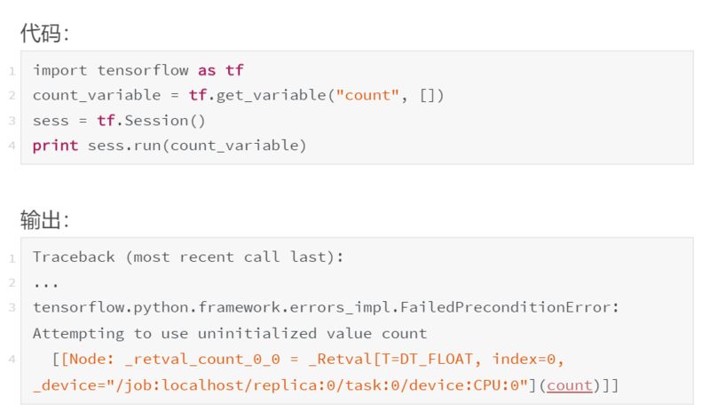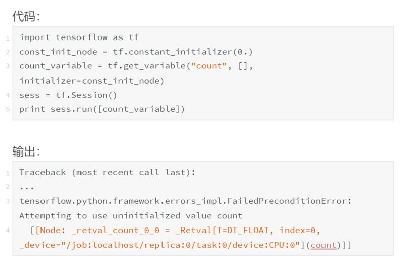 问题在于会话和图之间的分隔。我们已经将 get_variable 的 initializer 属性指向 const_init_node,但它只是在图中的节点之间添加了一个新的连接。我们还没有做任何与导致异常有关的事情:与变量节点(保存在会话中,而不是图中)相关联的内存仍然为“null”。我们需要通过会话让 const_init_node 更新变量。