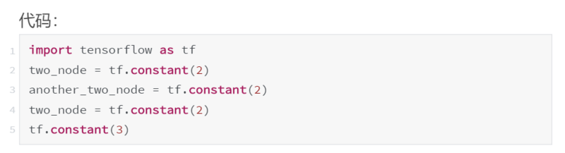 每次我们调用 tf.constant 的时候,我们都会在图中创建一个新节点。即使节点在功能上与现有节点完全相同,即使我们将节点重新分配给同一个变量,甚至我们根本没有将其分配给变量,结果都一样。
