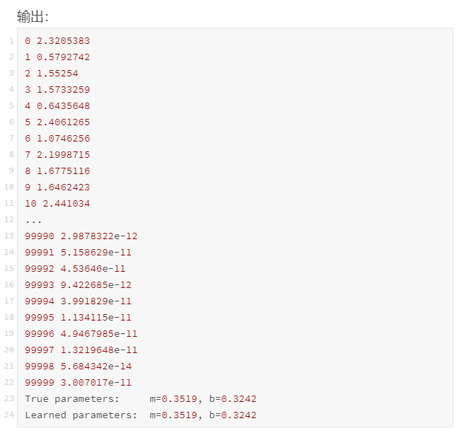 正如你所看到的,损失基本上没有变化,而且我们对真实参数有了很好的估计。这部分代码只有一两行对你来说是新的: