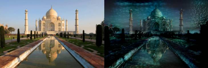 除了恐怖人脸之外,人工智能还能把世界各地的著名建筑,修改成恐怖片场景!